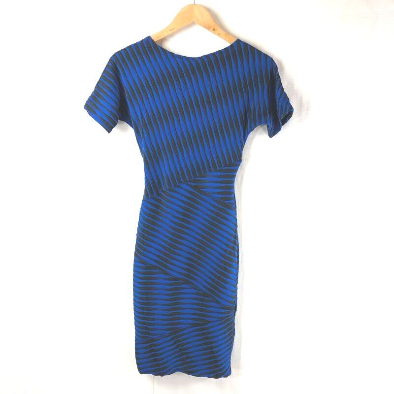 プレンティバイトレイシーリース plenty by tracy reese ワンピース 半袖 ボーダー カシュクール 裏地付き タグ付き 青系 Sサイズ 2025032100199