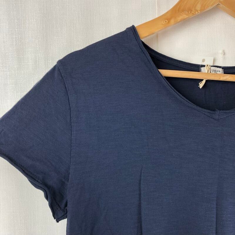 ファイバー fiver Tシャツ 半袖 Vネック ワンポイントデザイン 綿100% イタリア製 タグ付き 紺 Sサイズ 2025032100250