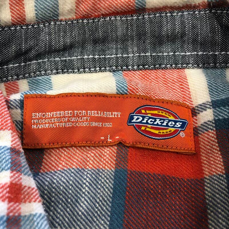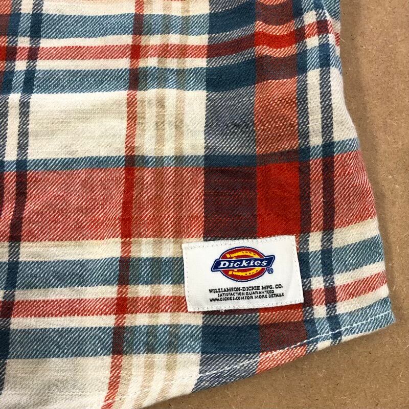 ディッキーズ Dickies チェックシャツ 7分袖 コットン100% ロゴボタン付き ホワイト系 レッド系 Lサイズ 2025032300148