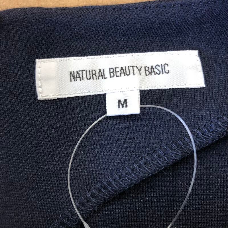 ナチュラルビューティーベーシック NATURAL BEAUTY BASIC 半袖カットソー バックプリーツデザイン ラウンドネック ネイビー Mサイズ 2025032400015