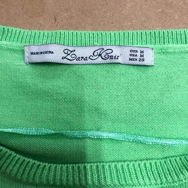 ザラ ZARA ニット ニットソー ラウンドネック ドロップショルダー グリーン系 黄緑色 28サイズ 2025032400183
