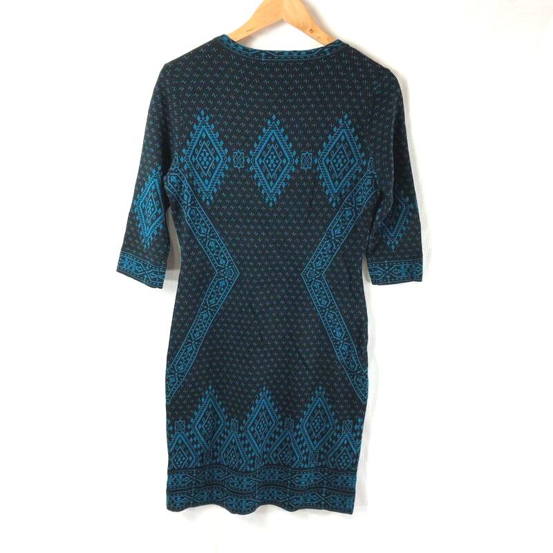 ファイブトゥエルブ 5TWELVE ワンピース ニット 長袖 ノルディック柄 綿 水色 黒系 Mサイズ 2025032500029