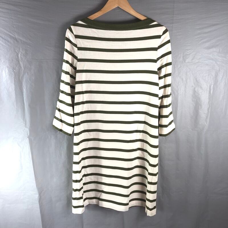 ケイトスペードニューヨーク kate spade new york ワンピース 長袖 ボートネック ボーダー ロゴボタン 綿100% ポケット タグ付き カーキ 白系 Mサイズ 2025032500081