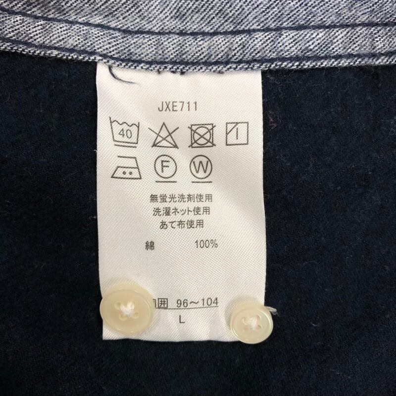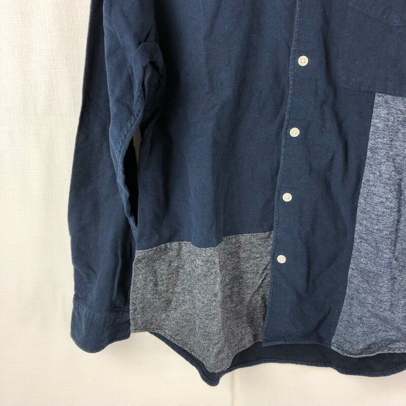 イッカ ikka シャツ 長袖 配色デザイン 綿100% ポケット 紺系 Lサイズ 2025032500128