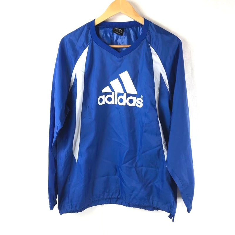 アディダス adidas カットソー ウィンドブレーカー Vネック ロゴ入り 袖ゴム ドロスト裾 青 Mサイズ 2025032500166