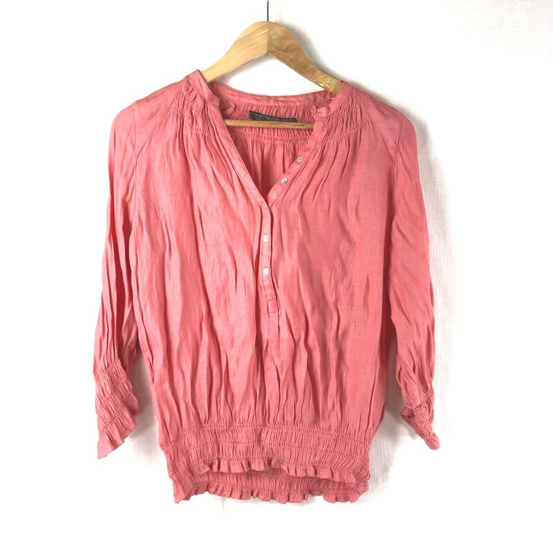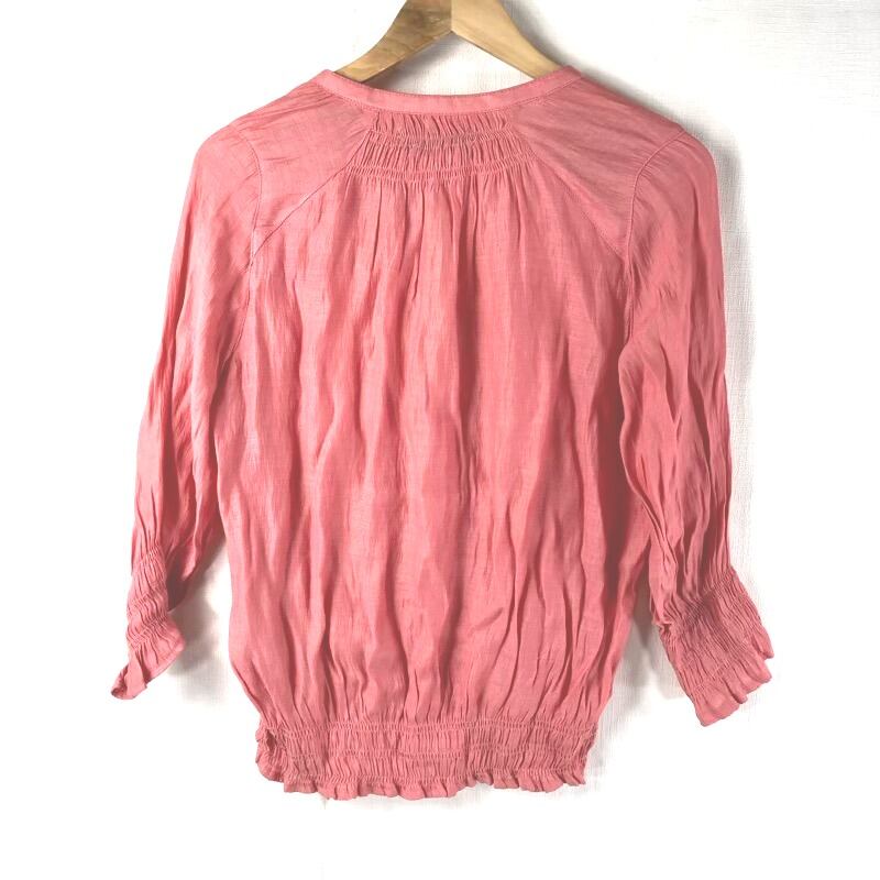 ザラベーシック ZARA BASIC カットソー ブラウス 長袖 薄手 Vネック キャザー ボタン ピンク系 Mサイズ 2025032500234