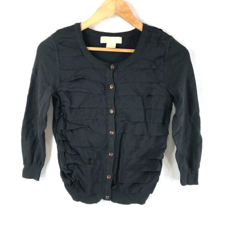 マイケルマイケルコース MICHAEL MICHAEL KORS カーディガン ニット フリル 飾りボタン リブ 綿 黒 XSサイズ 2025032500326