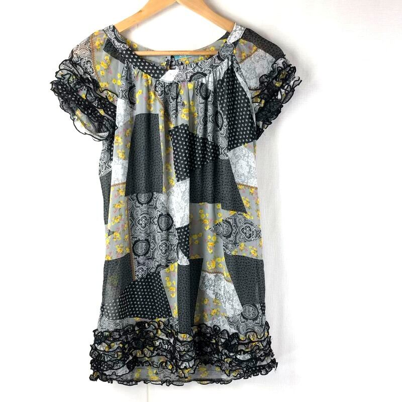 アンナケリー Anna Kerry ワンピース 半袖 袖フリル 裾フリル 花柄 裏地付き 黒系 2025032600026