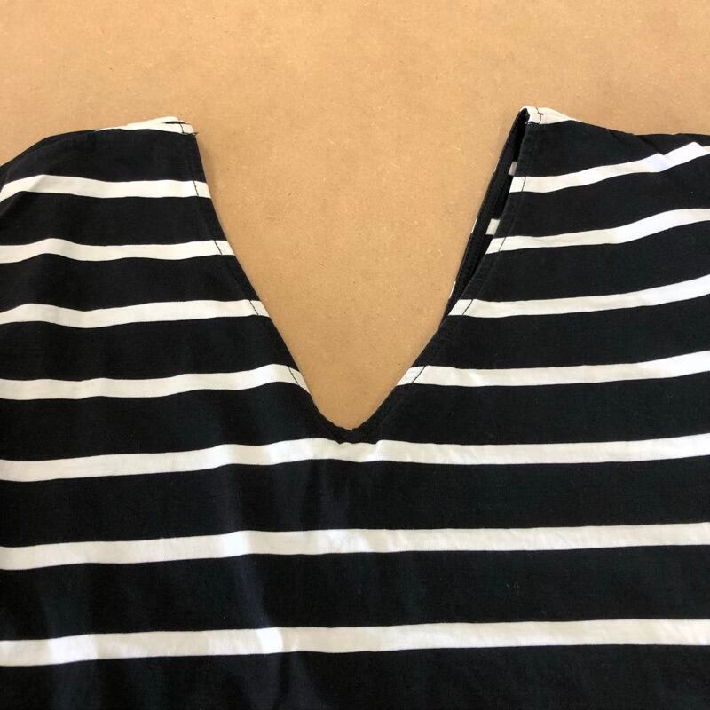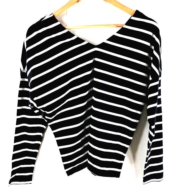 アダムエロペ Adam et Rope' Vネックカットソー ボーダー 長袖 日本製 コットン100% ブラック系 2025032700016