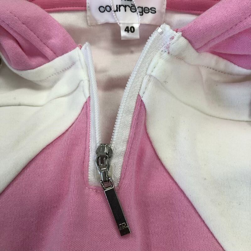 クレージュ Courreges フード付きカットソー パッチワーク柄 UVケア機能 コットン100% ホワイト系 40サイズ 2025032700092