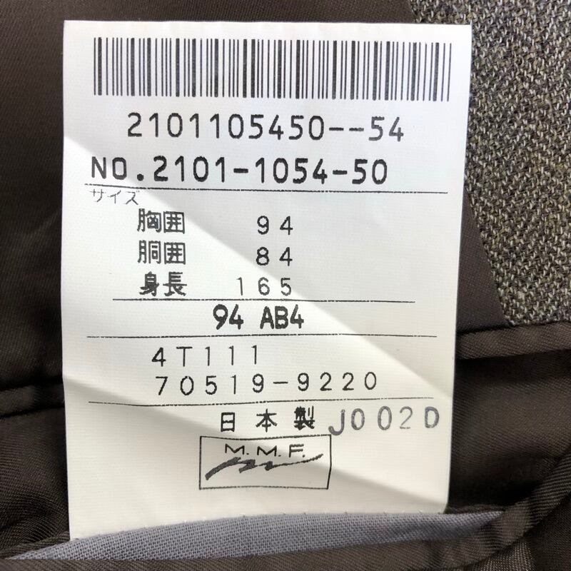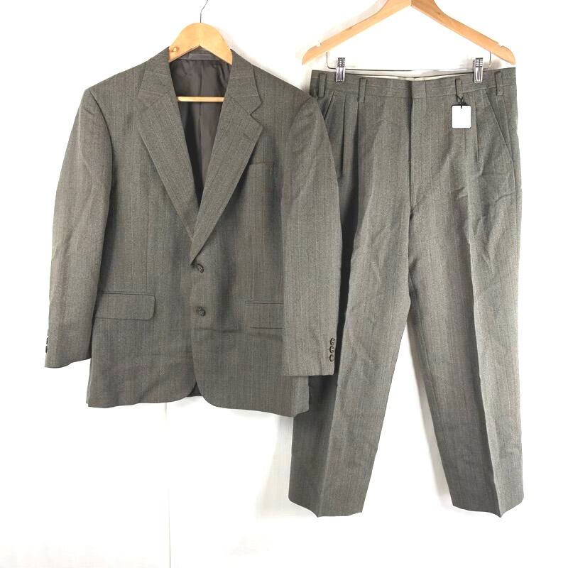 ハーディエイミス HARDY AMIES LONDON スーツ セットアップ ジャケット パンツ ストライプ 肩パッド スリット 日本製 タグ付き ブラウン系 94AB4サイズ 2025032800051