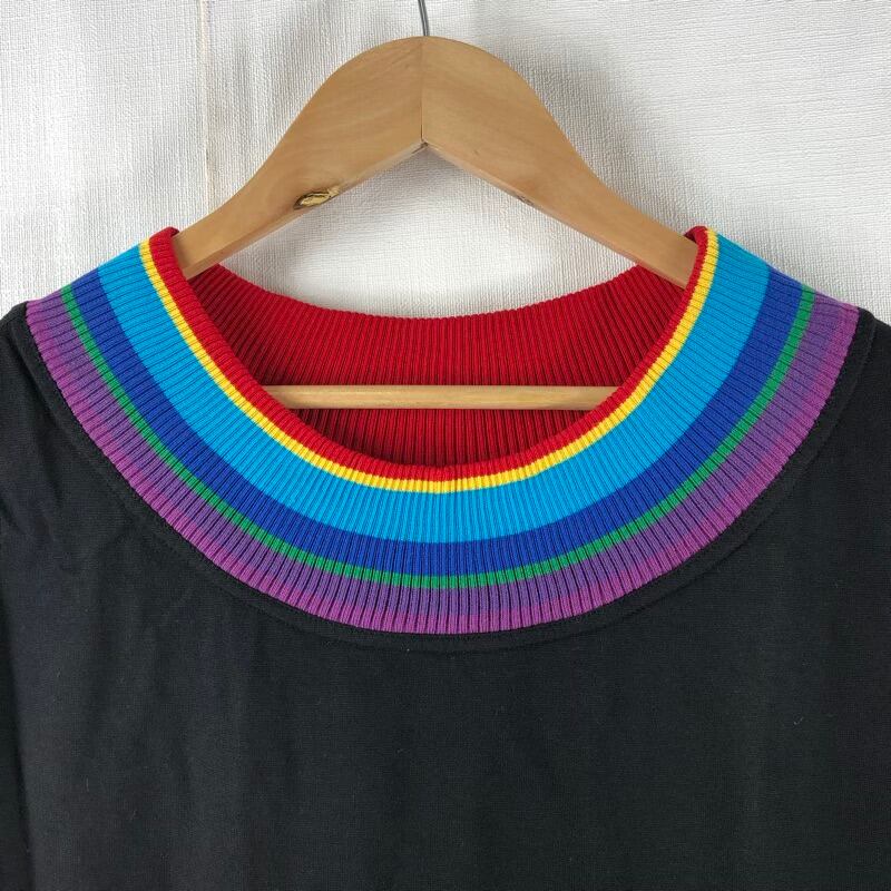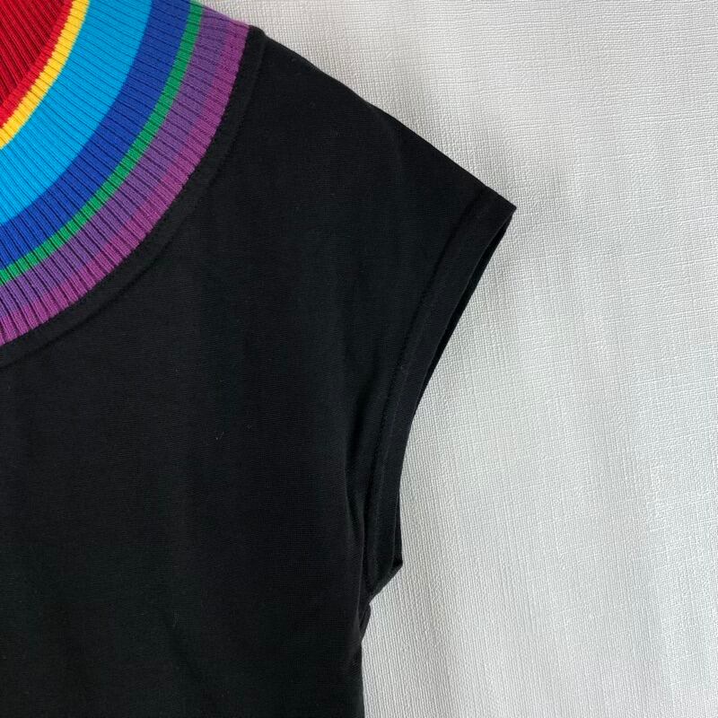 カステルバジャック JC de CASTELBAJAC カットソー フレンチスリーブ レインボー 綿 イタリア製 タグ付き 黒 42サイズ 2025033000085