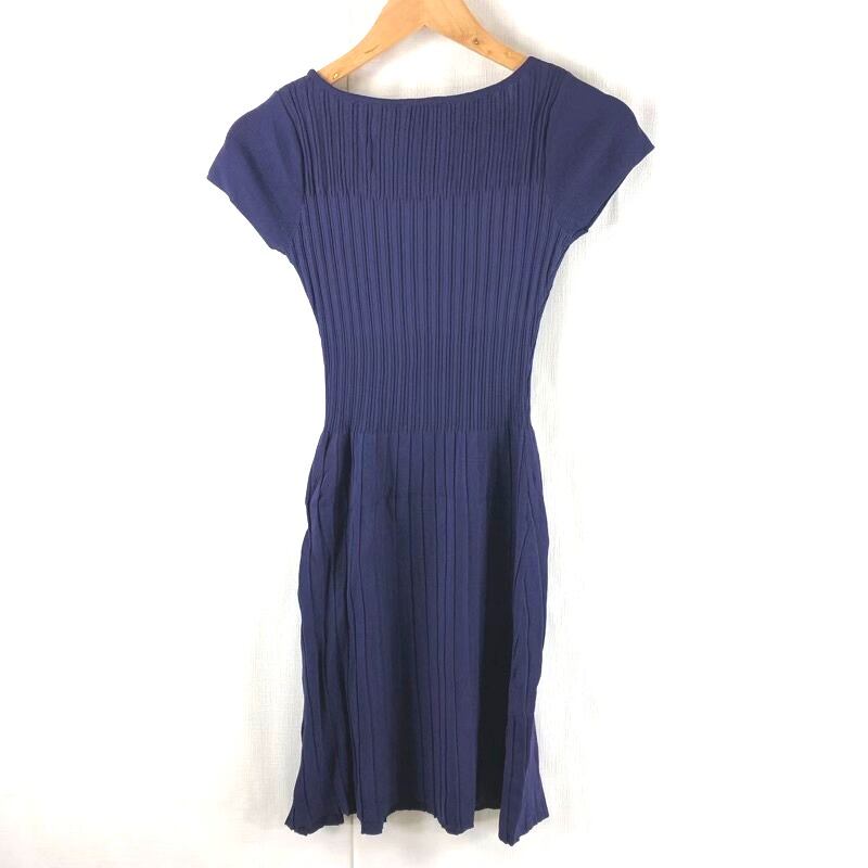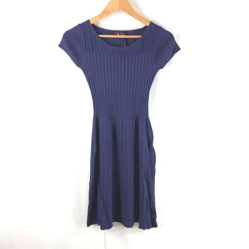 シネカノンデザインインパリス Sinequanone designed in paris ワンピース 半袖 リブ タグ付き 紺 36サイズ 2025033000115