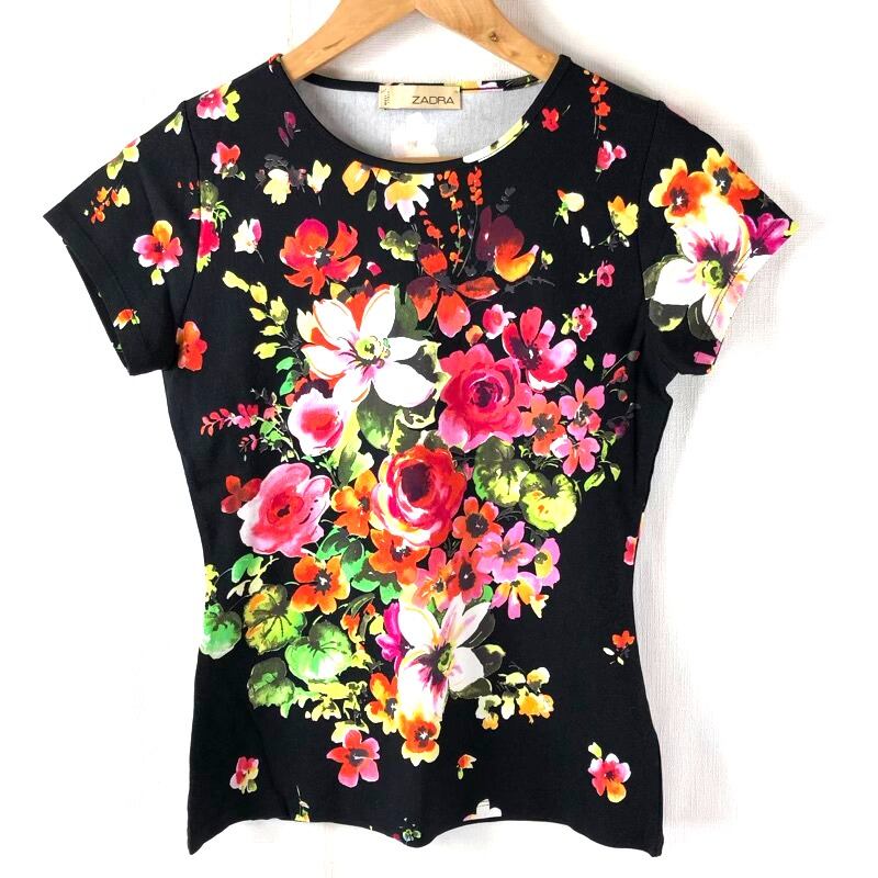 ZADRA カットソー 半袖 花柄 イタリア製 黒 Sサイズ 2025033100402