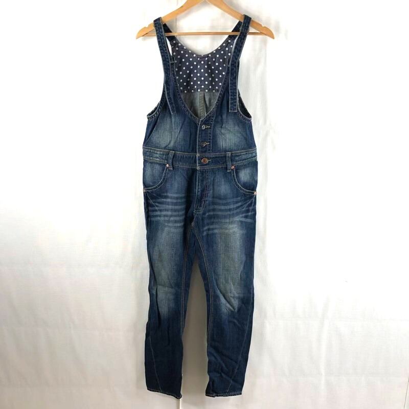 アミダストジーンズ AMIDST JEANS デニムサロペット デニムオーバーオール フロントボタン ヴィンテージ加工 ブルー系 インディゴ Mサイズ 2025040100129