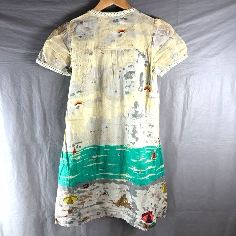 フランシュリッペ franchelippee ワンピース 半袖 パフスリーブ インド綿 フロントフリル インナー付き イエロー系 Mサイズ 2025040100136