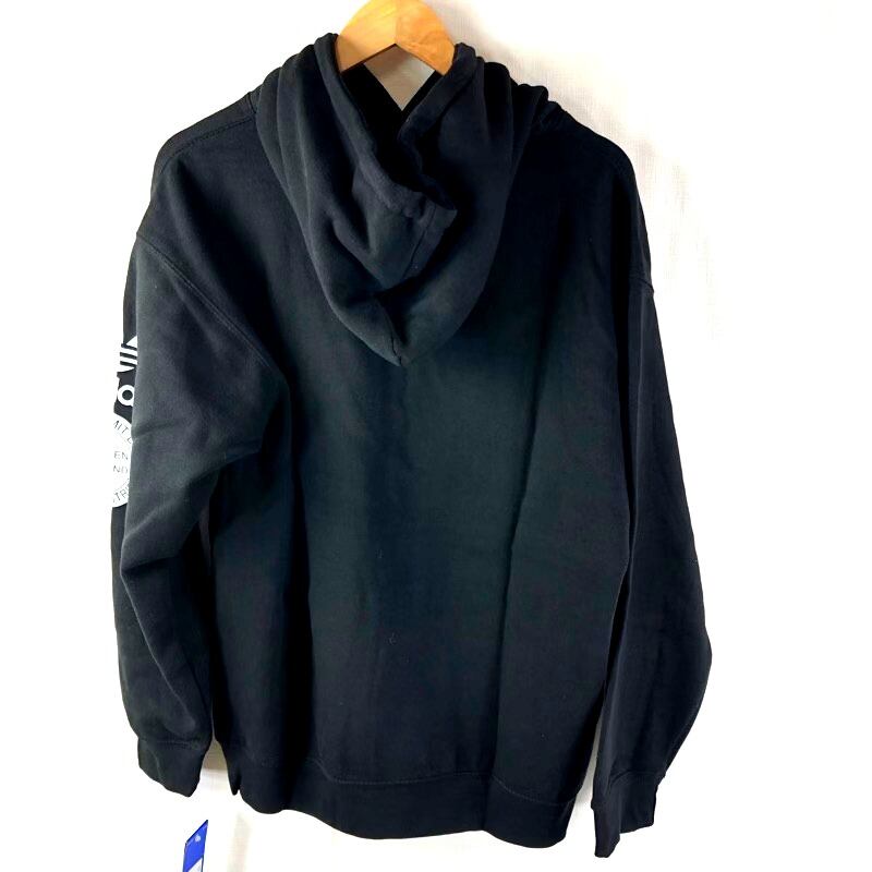 アディダス adidas パーカー 袖ブランドロゴ 裏起毛 タグ付き 前ポケット 黒 Lサイズ 2025040200041