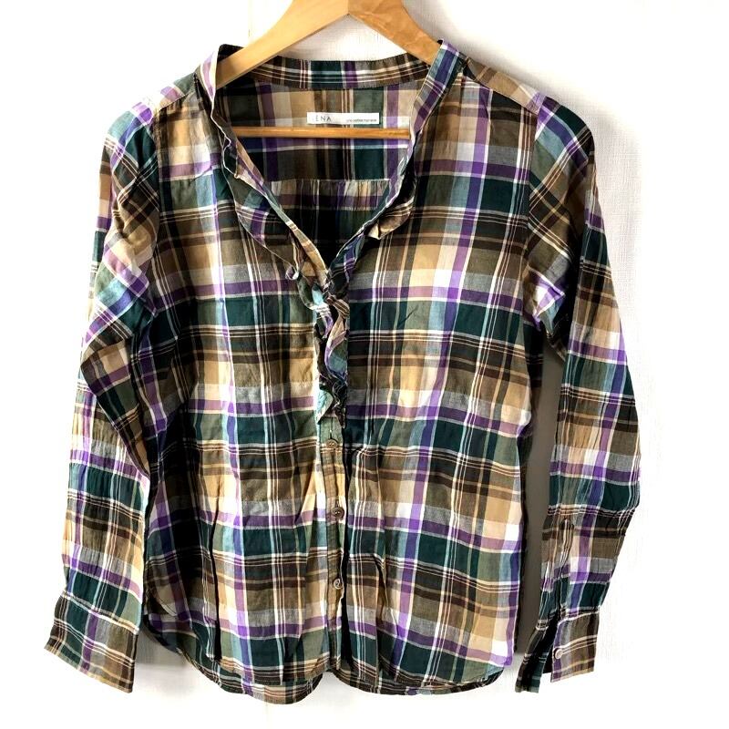 イエナ IENA シャツ チェック 長袖 フリル 綿 日本製 ブラウン系 2025040200058