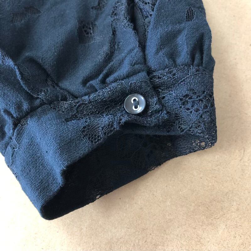 K halita カットソー 袖レース 花模様 袖ボタン 黒 Mサイズ 2025040200065