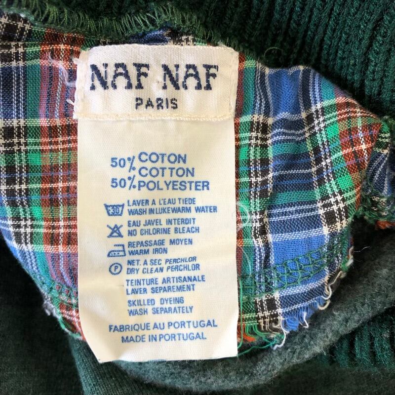 ナフナフ Naf Naf PARIS トレーナー 長袖 ハイネック 英字 ワッペン風デザイン リブ 綿 緑系 2025040400144