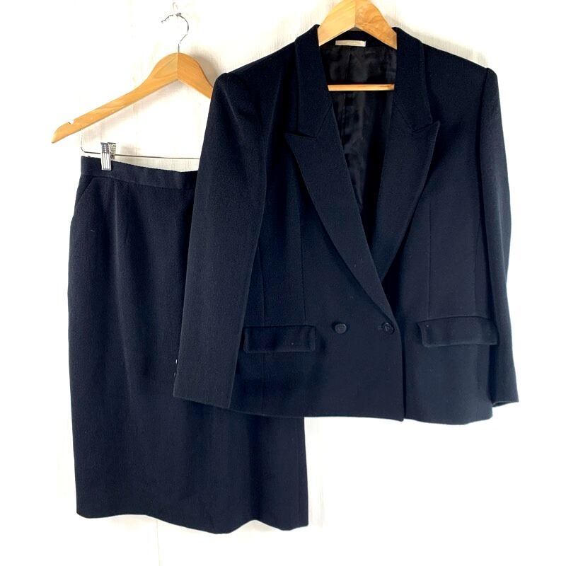 アクアスキュータム Aquascutum セットアップ スーツ ジャケット 肩パット サイドポケット スカート スリット裏地付き 黒 2025042100066