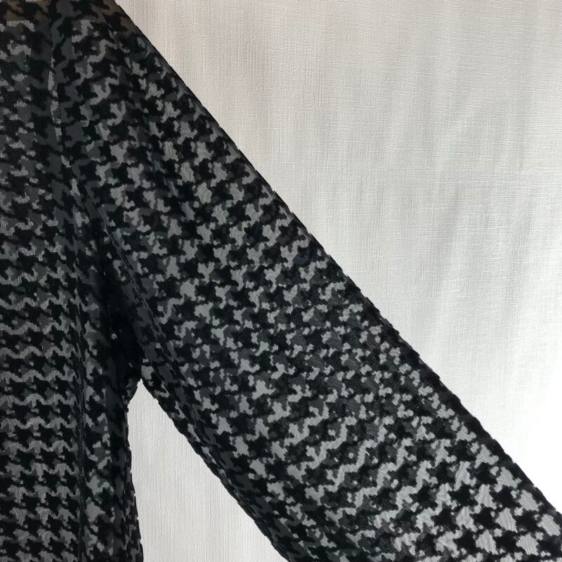 ドゥクラッセ DoCLASSE カットソー シースルー 千鳥柄 長袖 袖ボタン 替えボタン付き 黒 2025042200018