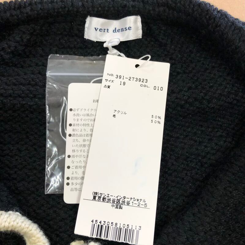 ヴェールダンス Vert Dense カーディガン タグ付き ニットジャケット配色デザイン 襟付き ポケット付き ブラック 19サイズ 2025042300039