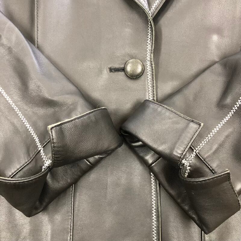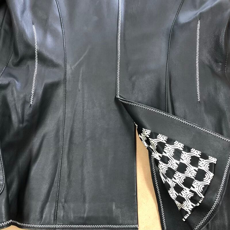 カーハ KAHA 東京毛皮貿易 羊革 レザージャケット 裏地付き ステッチデザイン ブラック系 Mサイズ 2025042300084