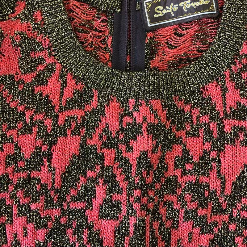 サイトウ トヨコ Saifu Toyoko ワンピース ニットワンピ 半袖 プリント柄 ラメ糸加工 レッド系 オレンジ系 2025042500125