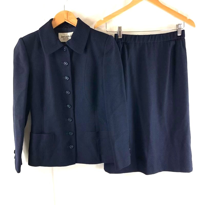 ジュンアシダ jun ashida スーツ セットアップ ジャケット スカート 肩パット サイドポケット 裏地付き 日本製 紺 7サイズ 2025052200145