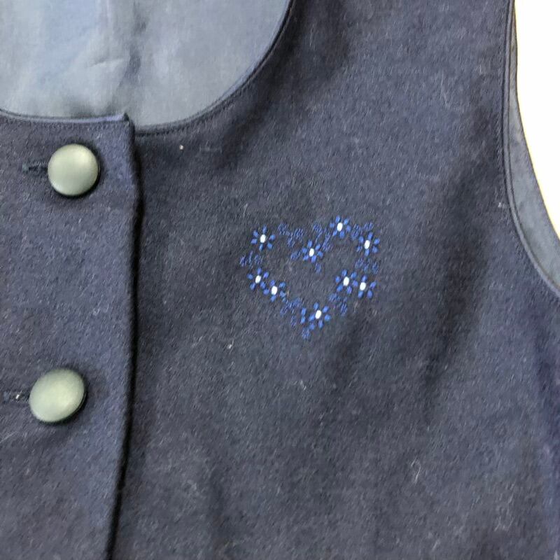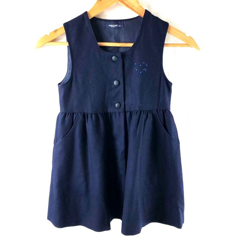 ファミリア familiar ワンピース ノースリーブ 裏地付き ボタン 胸元ワンポイント 花刺繍 サイドポケット 紺 120サイズ 2025052200176