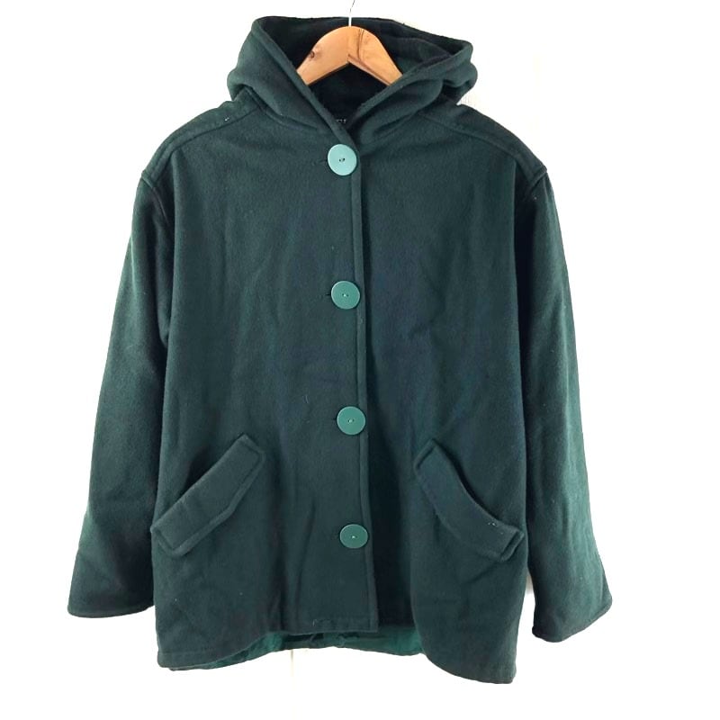ジョーフィールド JOFELD コート フード付き 裏地付き 丸ボタン サイドポケット 肩パット 緑 Mサイズ 2025052200268