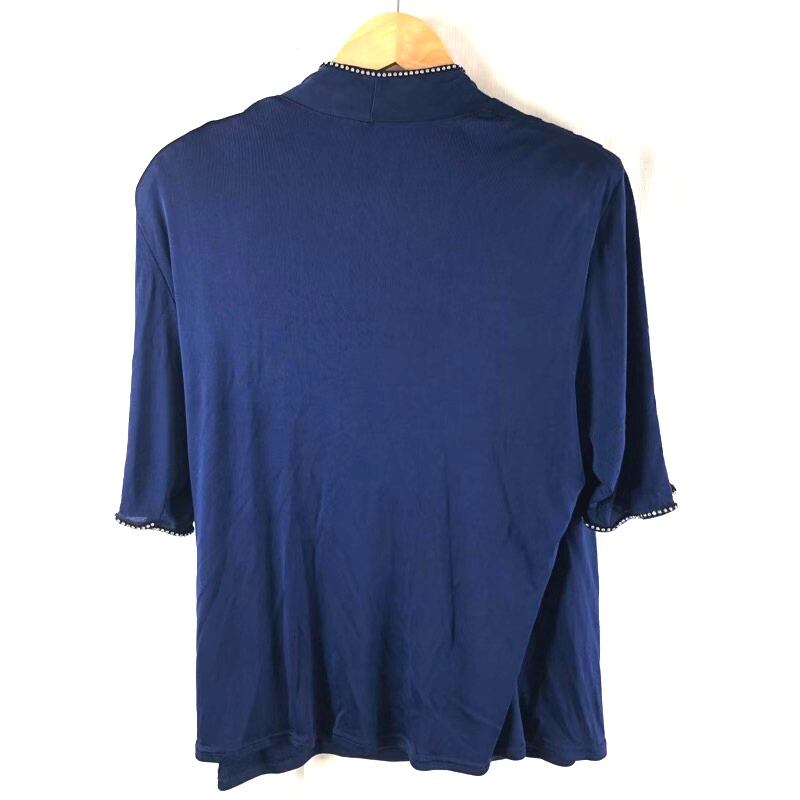 イタリヤ 伊太利屋 カットソー ビジュー 装飾 袖装飾 肩パット 五分袖 ブルー 11A2サイズ 2025061600172