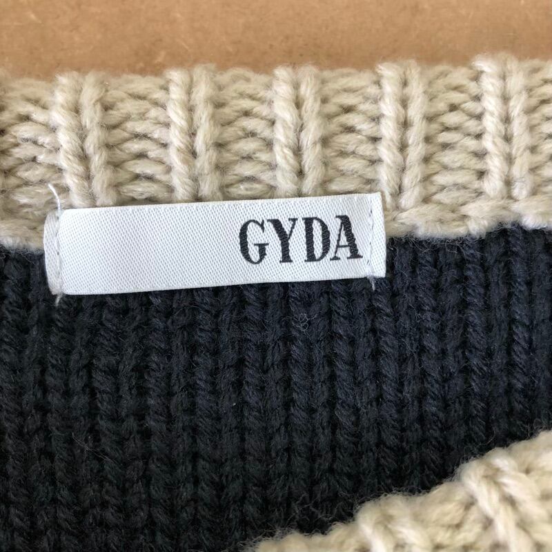 ジェイダ GYDA ニット 長袖 英字柄 サイドポケット Uネック ベージュ Fサイズ 2025052400071