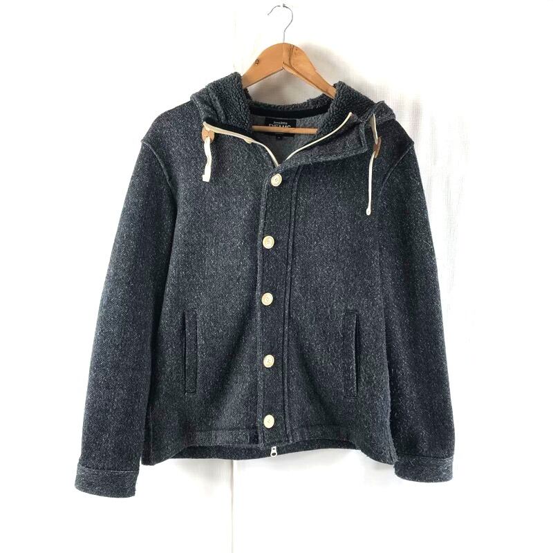 ビームス BEAMS ジャケット ミックス生地 ボア 牛革 ジップ ボタン フード グレー 黒系 Mサイズ 2025052500030