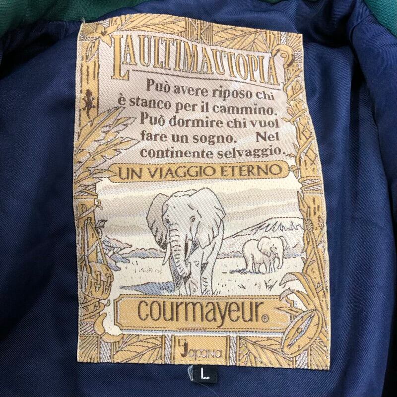 クールマイヨール courmayeur ジャケット スノーウェア ロゴ入り バック刺繍 フード ファー ジップ リブ袖 緑 Lサイズ 202505250004