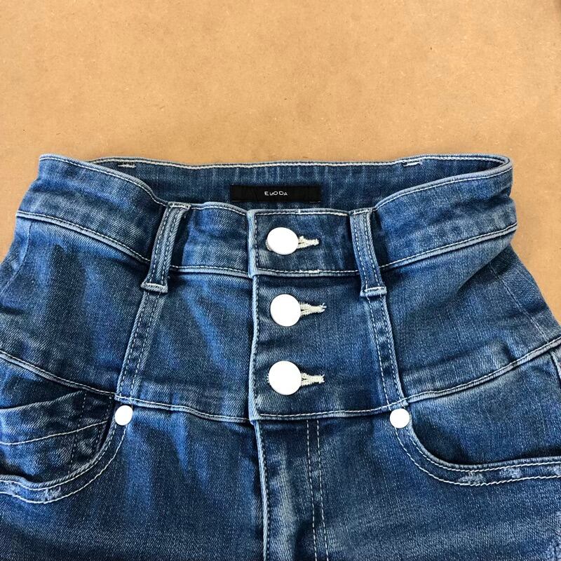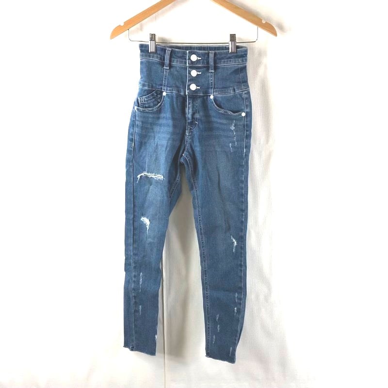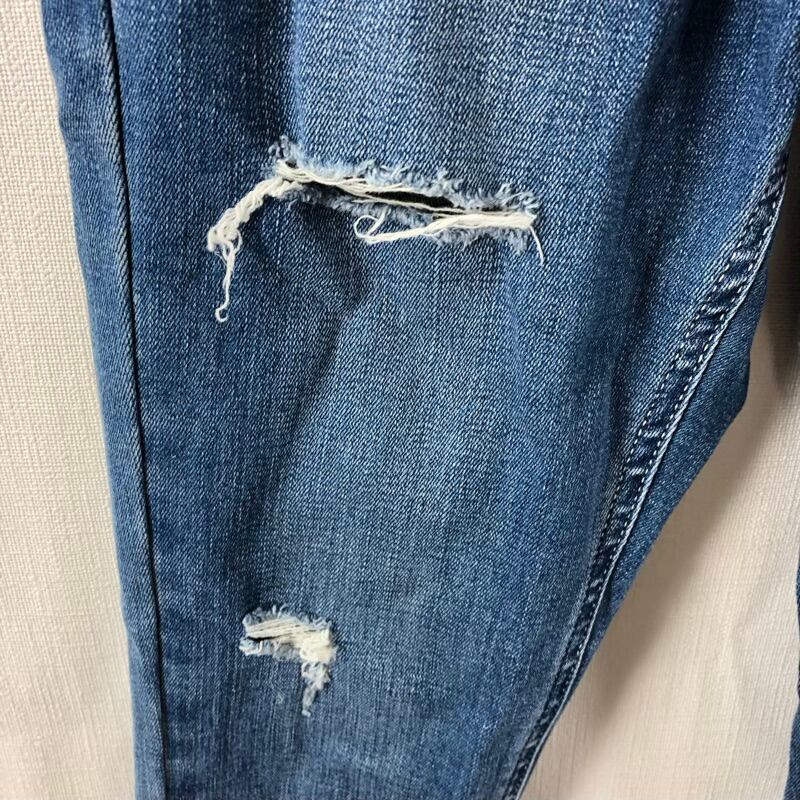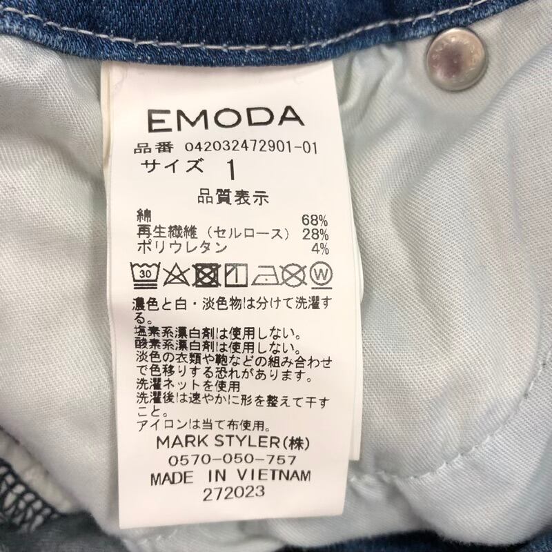 エモダ EMODA パンツ デニム ハイウエスト スキニー ダメージ加工 ロゴボタン 綿 ブルー系 1サイズ 2025052500061