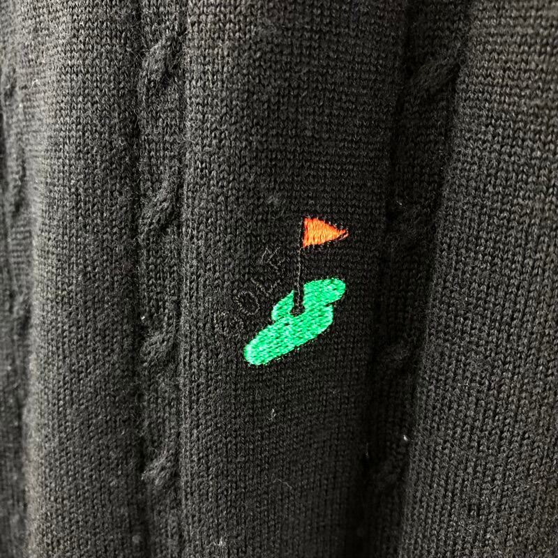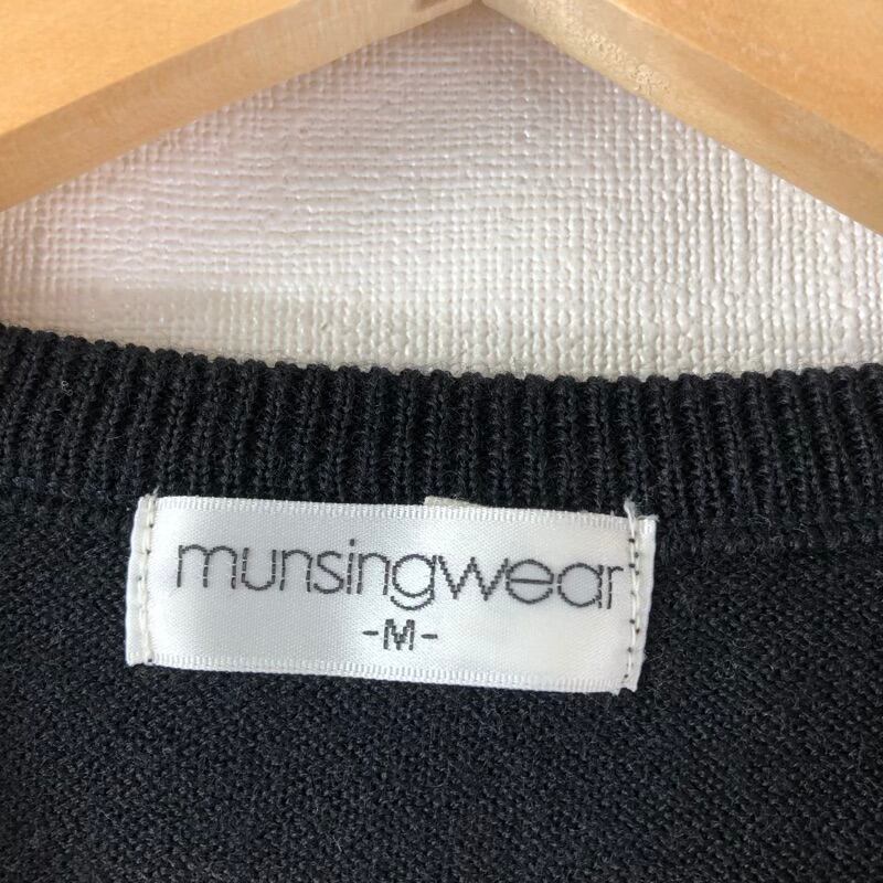 マンシングウェア Munsingwear ベスト ニット ウール Vネック 刺繍 ゴルフ ケーブル編み リブ 黒 Mサイズ 2025052700157