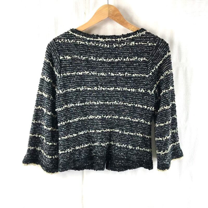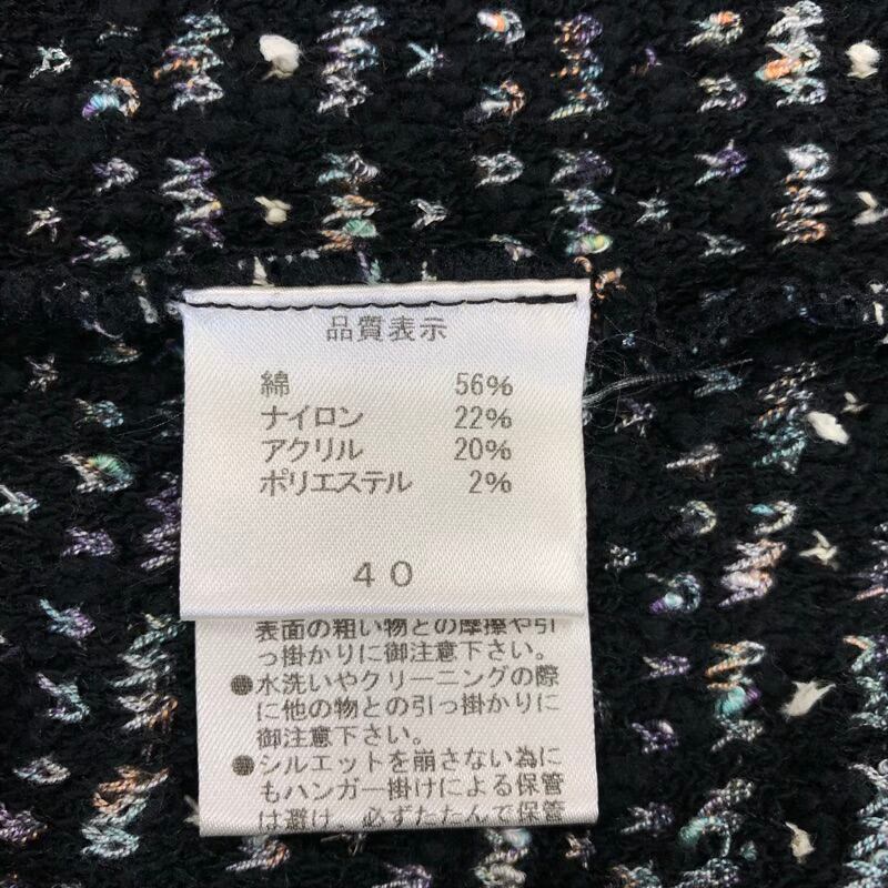 ジェイフェリー J.FERRY カーディガン 長袖 ツイード フリンジ ラメ糸 ポケット ホック 日本製 紺 ネイビー系 40サイズ 2025052700300