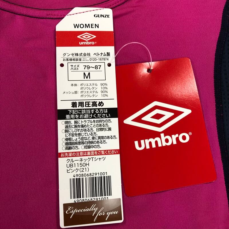 アンブロ UMBRO Tシャツ 半袖 クルーネック ロゴ入り UVブロック ドライ 着用圧高め タグ付き ピンク Mサイズ 2025052700348
