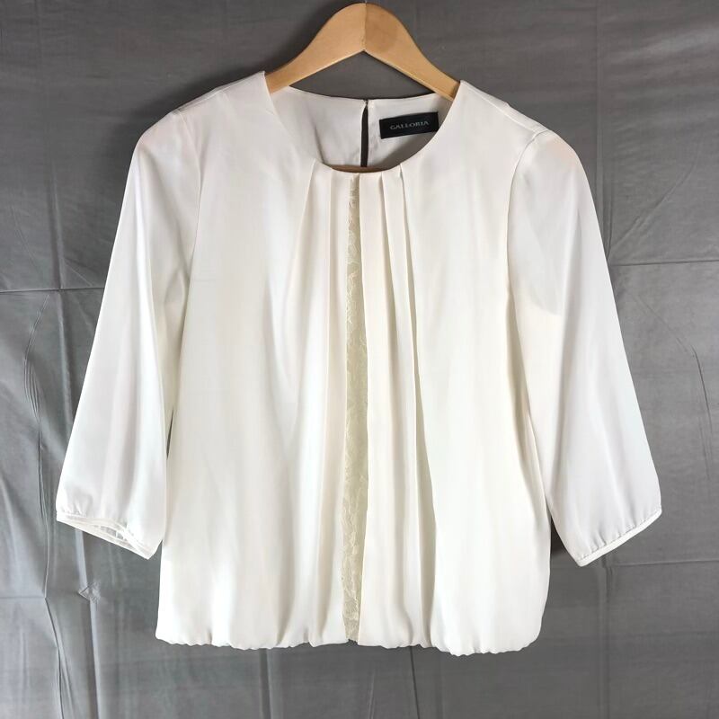 ギャローリア GALLORIA ブラウス カットソー 長袖 タック レース バルーン裾 白 Sサイズ 2025052700355