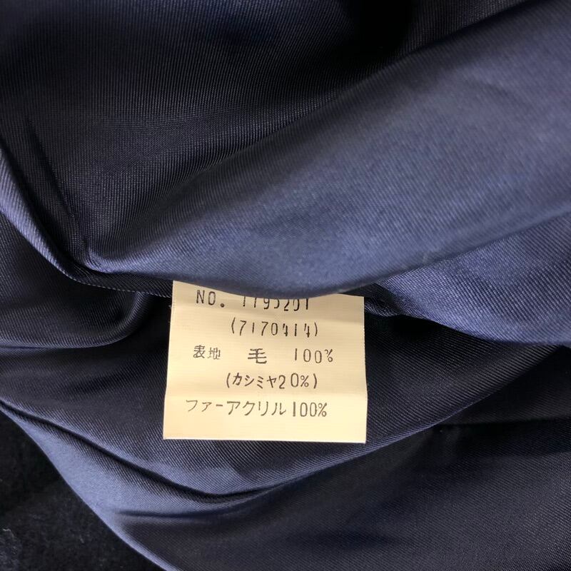 ハーモニカ HARMONICA ロングコート 襟ファー くるみボタン 毛100% 日本製 ネイビー 2025052800093