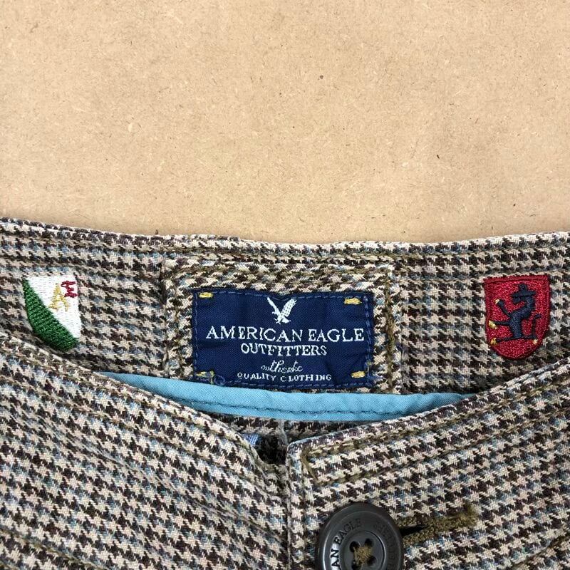 アメリカンイーグル American Eagle ショートパンツ 千鳥格子 チェック ロゴボタン ブラウン系 ベージュ系 0サイズ 2025061100030