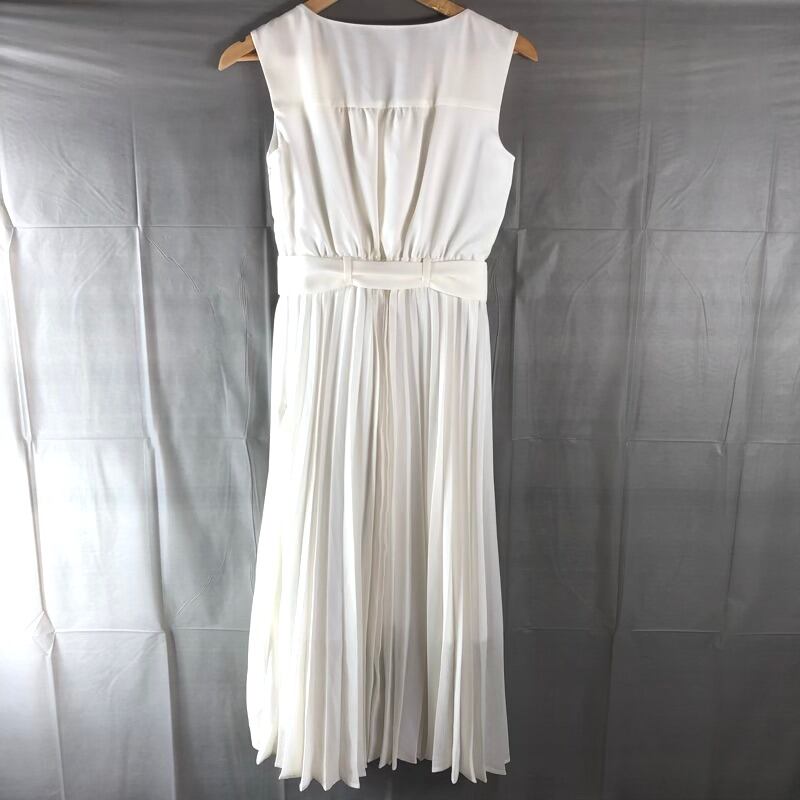 リランドチュール Rirandture ワンピース ノースリーブ リボン ロング プリーツスカート 裏地付き ボタン オフホワイト 2サイズ 2025061400154