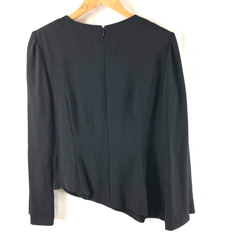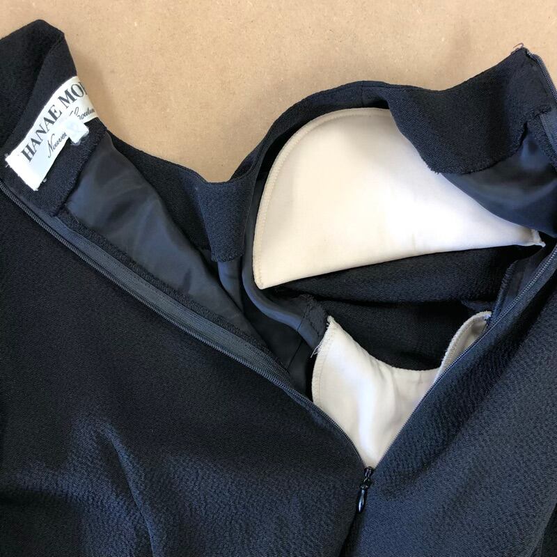 ハナエモリ HANAE MORI カットソー ビジューボタン アシメデザイン 肩パッド 脇パッド ブラック 40サイズ 2025061500106