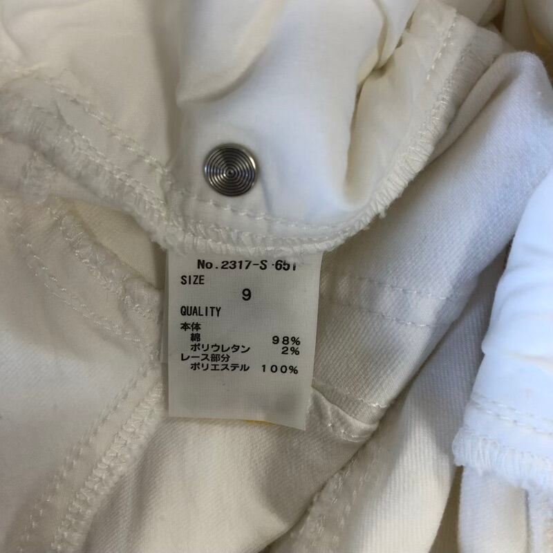 リネーム Rename デニムパンツ ダメージ加工 レース ストレッチ ロゴ刺繡 ホワイト Mサイズ 2025061500113