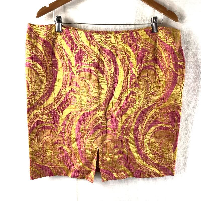 ジャンフランコフェレ Gianfranco Ferre スカート柄模様 タグ付き 裏地付き スリット ファスナー イタリア製 ピンク イエロー 48サイズ 2025061600035