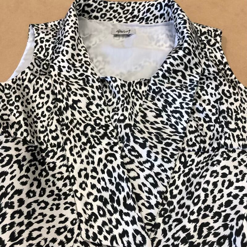 GRESOM ワンピース ノースリーブ ヒョウ柄 襟 チャック 黒 白 11ARサイズ 2025061600134