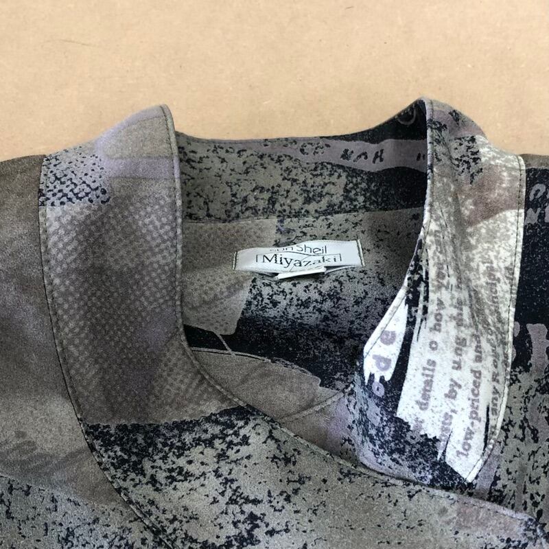 sun sheil Miyazaki ジャケット 薄手 肩パット 長袖 サイドポケット 替えボタン付き 柄模様 日本製 カーキ― フリーサイズ 2025061600165
