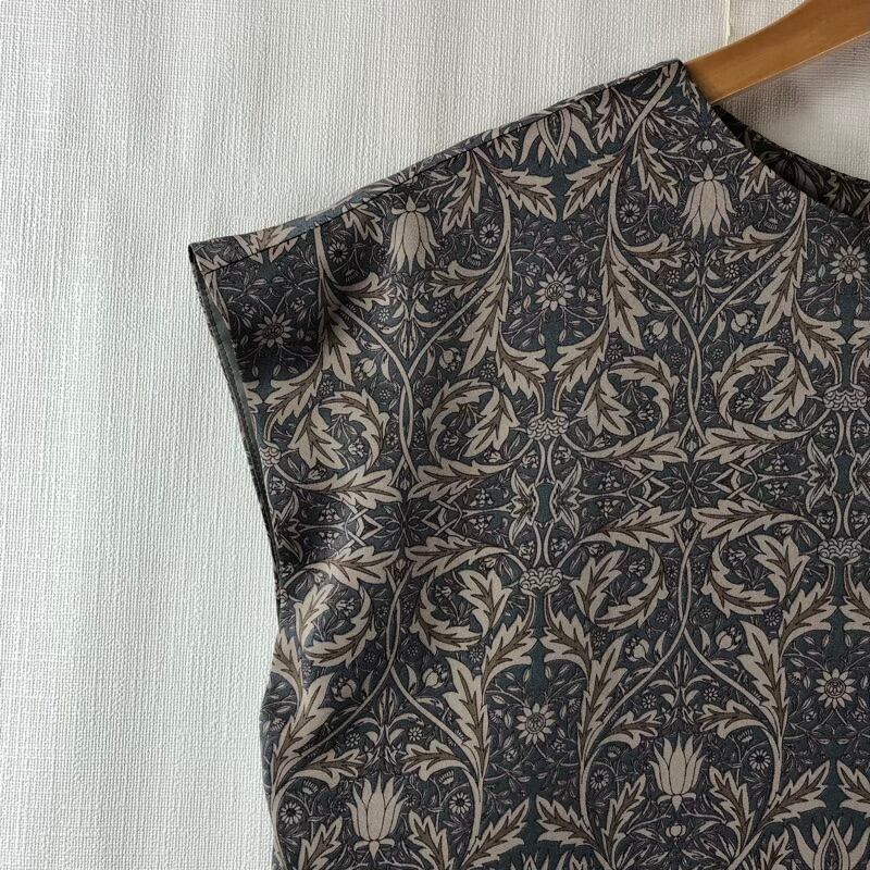 アゼルリドー AZEY-LE-RIDEAU ワンピース ノースリーブ ダマスク柄 ボタニカル柄 裏地付き 日本製 くすみブルー ベージュ グレー系 Mサイズ 2025061800022
